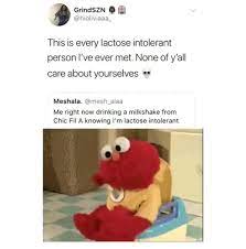 Lactose intolerance meme elmo. Bacteria in your colon break down the lactose and create fluid and. Get the latest funniest memes and keep up what is going on in the meme-o-sphere. Lactose intolerance is a common digestive problem where the body is unable to digest lactose a type of sugar mainly found in milk and dairy products.